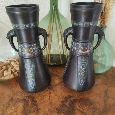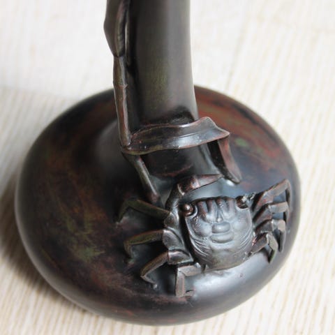 En bronze japansk antikvase, lavet af en japansk kunstner, estimeret periode 1910–1920, mål 20 cm bred, 25 cm høj og 20 cm dyb, i god stand med mindre tegn på ældning. Klik på den blå "gå til varen" knap, for at købe eller byde på denne vare. Den samlede pris vil blive vist inden du afgiver dit bud.