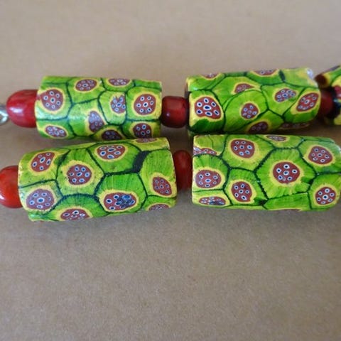 Det er alle gamle perler, lavet i Murano nær Venedig, omkring år 1900 – ældre end mange af millefiori-perlerne.