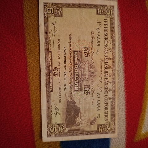 Sjælden og flot gammelt Hong Kong banknote til samling.