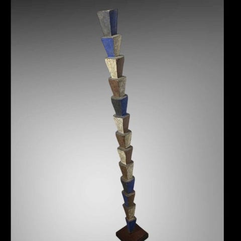 Bakongo staffen, en træ- og jernstav fra Congo i Bakongo-traditionen, dateret omkring 1900–1910, stammer fra Jos Christiaens-samlingen i Brugge. Klik på den blå "gå til varen" knap, for at købe eller byde på denne vare. Den samlede pris vil blive vist inden du afgiver dit bud.