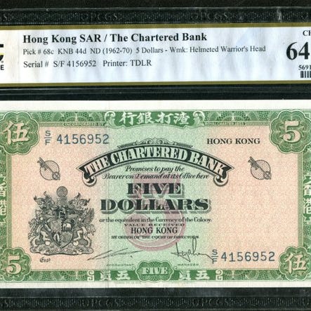 PCGS-certificeret, Hongkong, ND 1961–1970, 100-dollars betalingssedel fra The Chartered Bank of Hong Kong med Dronning Elizabeth II, Grøn nøgle og udsigt over Hongkong, størrelse 159 × 89 mm, Pick 71b / KNB 47c, vurdering Choice About Uncirculated 58. Klik på den blå "gå til varen" knap, for at købe eller byde på denne vare. Den samlede pris vil blive vist inden du afgiver dit bud.