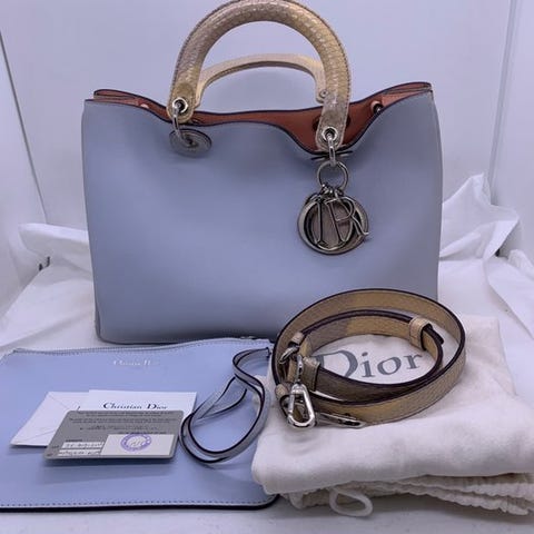 Christian Dior 30 Montaigne skuldertas af ruskind og shearling med forgyldte metalliske detaljer, tofarvet grå og creme, 18 x 29 x 10 cm, inklusive dustbag og i næsten som ny stand. Klik på den blå "gå til varen" knap, for at købe eller byde på denne vare. Den samlede pris vil blive vist inden du afgiver dit bud.