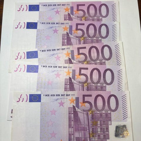 Syv banknotes fra 2002, seks underskrevet af Trichet og en 200-euro seddel underskrevet af Duisenberg, i ucertificeret stand. Klik på den blå "gå til varen" knap, for at købe eller byde på denne vare. Den samlede pris vil blive vist inden du afgiver dit bud.