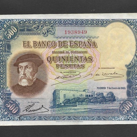 Spanien batch på 10 sedler à 10.000 pesetas fra 1992 (Pick 166). Klik på den blå "gå til varen" knap, for at købe eller byde på denne vare. Den samlede pris vil blive vist inden du afgiver dit bud.