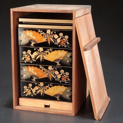 Wooden 2 Tiered Box with Makie Lacquerware - Boks - Træ