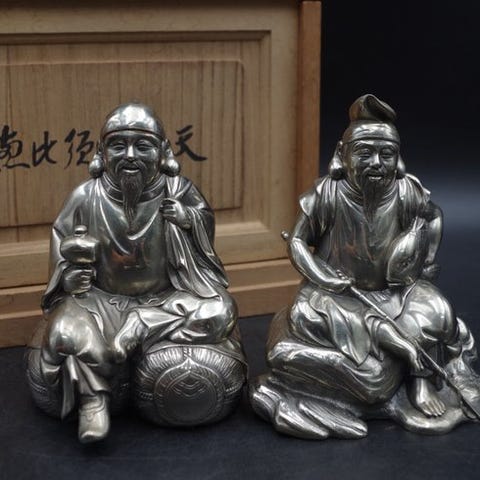 Håndhugget træ Nyoirin Kannon siddende skulptur fra Edo-perioden i Japan, med indlagte krystaløjne og en halo med kobberspejl signeret Fujiwara Yoshikatsu, i fire aftagelige dele, ca. H 71,5 × B 29 × D 25 cm, i rimelig stand med aldersrelaterede slitage og manglende dele. Klik på den blå "gå til varen" knap, for at købe eller byde på denne vare. Den samlede pris vil blive vist inden du afgiver dit bud.