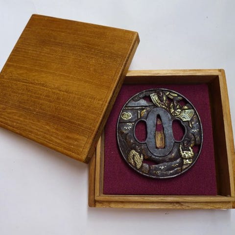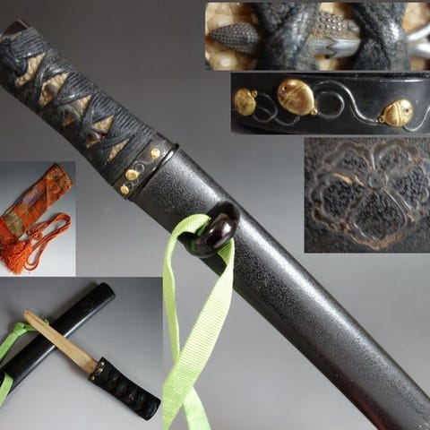 Smuk katana-tsuka fra Japan, 25 cm høj og 4 cm bred, i fremragende stand og tidligere en del af en privat samling med bageste itomaki. Klik på den blå "gå til varen" knap, for at købe eller byde på denne vare. Den samlede pris vil blive vist inden du afgiver dit bud.