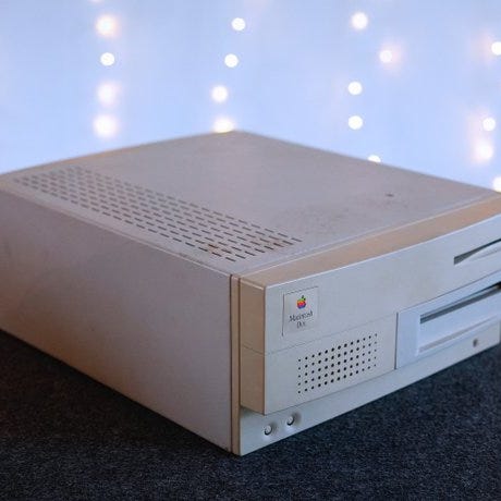 Her tilbydes en original Apple Macintosh Hard Disk 20 (20SC) — en af Apples tidligste eksterne harddiske og et vigtigt tilbehør til de første generationer af Macintosh-computere.