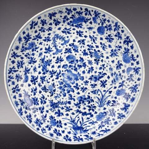 Elegant rundt fad af nobelt ophav lavet med den raffinerede teknik Bidri, typisk for det centrale Indien og Deccan, udviklet mellem det 17. og 19. århundrede. Genstanden er lavet af en legering af zink og kobber, kunstigt mørklagt med oxider for at opnå den karakteristiske dybe sorte nuance, på hvilken der pryder lineære og blomsteragtige indlæg i messing og sølv.