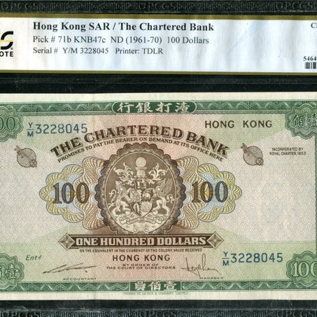 PMG-certificeret Superb Gem Uncirculated 67 erstatningsstjerne-sedler fra 2003 Hongkong, Kina, med pålydende 1.000 dollars, motiv kinesisk drage og Hongkongs havn, Pick 295, ZZ erstatningsstjerne, størrelse 164 × 82 mm, reference P#295; sjælden. Klik på den blå "gå til varen" knap, for at købe eller byde på denne vare. Den samlede pris vil blive vist inden du afgiver dit bud.
