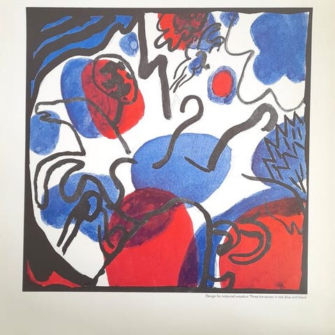 Kandinskys mest genkendelige værk er måske ikke et fuldt udviklet billede. Denne tegning er en lille undersøgelse af, hvordan forskellige farvekombinationer, som maleren brugte som støttemateriale i sin kreative proces, opfattes.