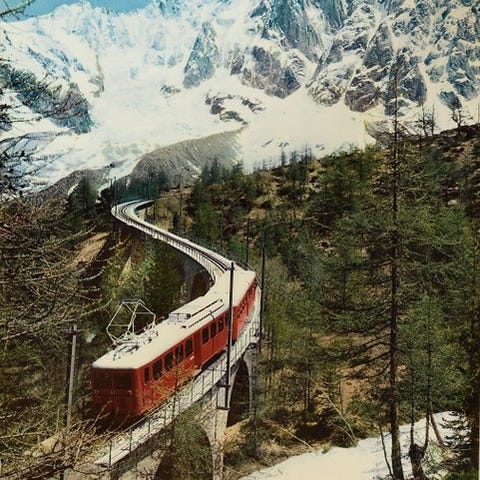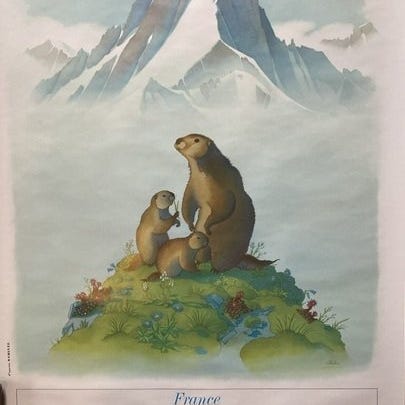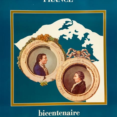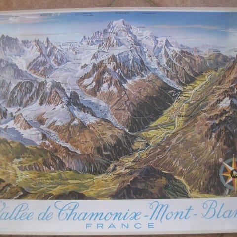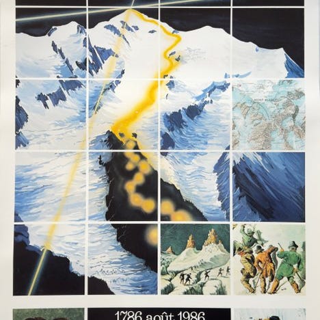 Stort mindetegning udgivet i 1986 på occasion af 200-året for den første bestigning af Mont-Blanc af Paccard og Balmat (1786).