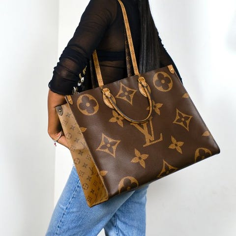 Louis Vuitton OnTheGo GM, lavet i Monogram Giant canvas, overrasker med sin enestående funktionalitet. Siderne og de ikoniske Toron-håndtag i Monogram Reverse canvas skaber en elegant farvekombination. De rummelige dimensioner og skulderstropperne fremhæver alsidigheden af den ikoniske Louis Vuitton-model, ideel til altid at have alt det væsentlige ved hånden.
