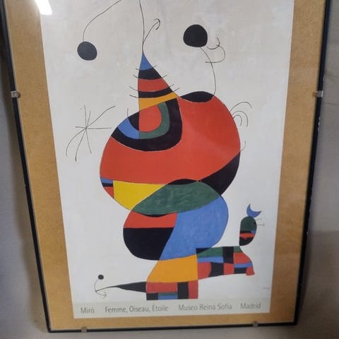 Trykt på højkvalitets papir fanger plakaten Mirós glædelige samspil af form, gestus og farve — symboler på frihed og fantasi, der blev visuelle ambassadører for Spaniens kulturelle modernitet i løbet af 1980'erne.