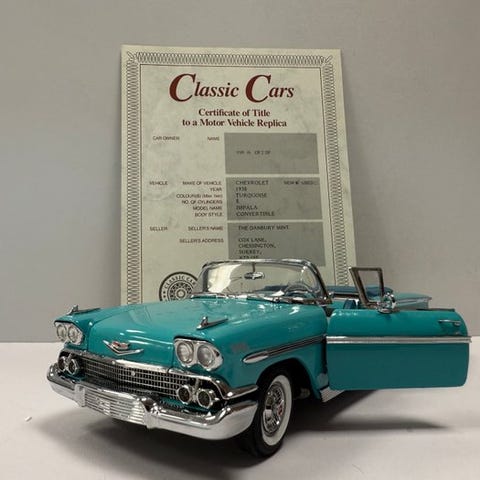Franklin Mint 1:24 skala diecast-model af en 1986 Chevrolet Corvette Convertible i gul, mint tilstand, med originalboks. Klik på den blå "gå til varen" knap, for at købe eller byde på denne vare. Den samlede pris vil blive vist inden du afgiver dit bud.