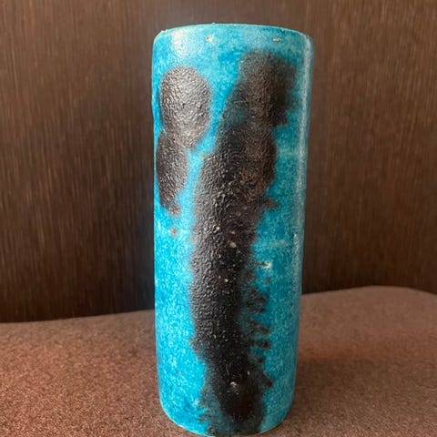 Flerfarvet keramikkvase med kobberglans og metalldekoration, forestillende en jagtscene, designet af Adriano Poggi for Ceramiche Adriano Poggi Faenza i Italien, årtierne 1960–1970, højde 32,5 cm, diameter 18 cm, bredde 18 cm, dybde 18 cm, vægt 3 kg, i fejlfrit tilstand. Klik på den blå "gå til varen" knap, for at købe eller byde på denne vare. Den samlede pris vil blive vist inden du afgiver dit bud.