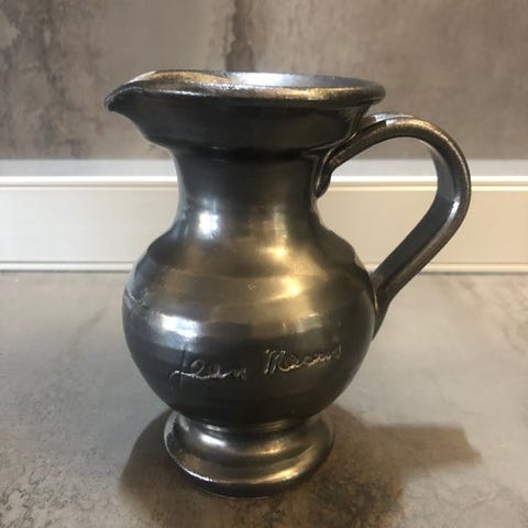 Museale skænke kanne fra fajancefabrikken Zenith i Gouda.