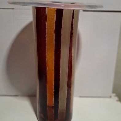 Kontemporær glasvase fra Kosta Boda (Sverige), produceret i 1980'erne, massiv glas med farvede indre indlæg, signeret på bunden, mål 23 × 16 × 14 cm, vægt 1,7 kg, to små flise-lignende skår indeni kanten og generelt brugt tilstand. Klik på den blå "gå til varen" knap, for at købe eller byde på denne vare. Den samlede pris vil blive vist inden du afgiver dit bud.