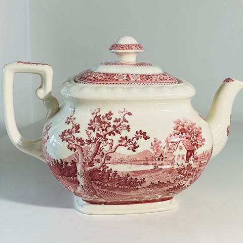 Smuk og autentisk fransk tekande i glaseret terracotta med låg.