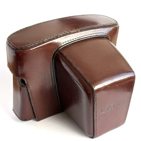 Ekstremt smuk kvalitet ægte læder paraattas til Leica R reflexkamera. Kamera og objektiv tjener som eksempel og indgår ikke i tilbuddet.