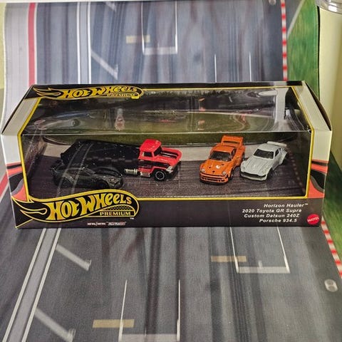 Til salg er et eksklusivt Hot Wheels Premium Car Culture – Exotic Envy (2022) sæt, en speciel beholderformet pakke, ikke længere i produktion og meget eftertragtet blandt samlere.