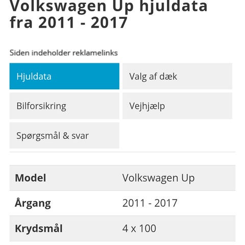 Stålfælge m. gl. vinterdæk VW Up!