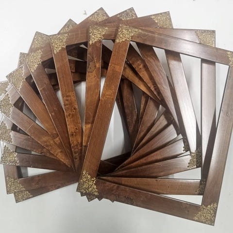 Stock af 10 rammer i træ intarsia i kirsebær med blomsterdesign, 18x24 cm indvendigt.