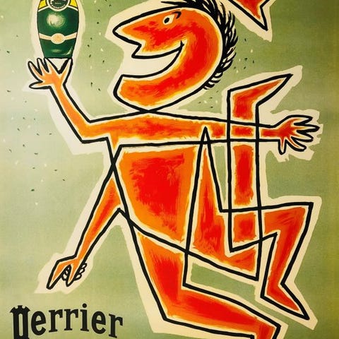 Smukt reklameplakat trykt i offsetlitografi for den berømte franske mineralvand fra mærket Perrier