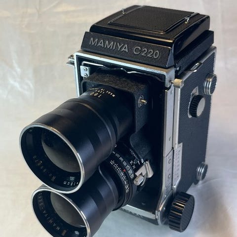 Mamiya M645 med CDS Prism Finder er et klassisk medium-format spejlreflekskamera, der tilbyder fuld manuel kontrol og en lys, målt søger. Kendt for sin robuste konstruktion og pålidelige mekaniske drift, forbliver det et favorit blandt filmfotografer, der nyder 6×4.5-formatet med udskiftelige objektiver og søger.