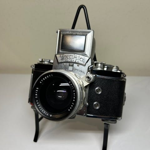 Exakta Varex IIa kamera med Biogon 1,5/75mm og Schacht Travegon 2,8/35mm linser; fysisk tilstand god og funktionel testet og i gang. Klik på den blå "gå til varen" knap, for at købe eller byde på denne vare. Den samlede pris vil blive vist inden du afgiver dit bud.