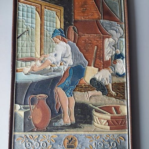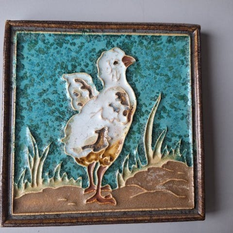 En Cloisonné keramikplade fra Porceleyne Fles, Nederlandene, med pelikan og unger, mål 11,5 × 11,5 × 1 cm, ca. 1930–1940, i god stand, brugt med små tegn på alder og pletter, vægt 240 g. Klik på den blå "gå til varen" knap, for at købe eller byde på denne vare. Den samlede pris vil blive vist inden du afgiver dit bud.