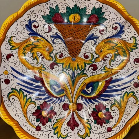 Håndskåret fra en mørk ler-keramiktyr er håndlavet og håndmalet med gul glasur med glasurbelagte guldbrozelementer. Et stykke keramikkunst signeret af kunstneren.
