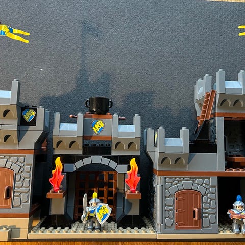 LEGO DUPLO Andet slot med tårn, to flag, og tilhørende figurer.