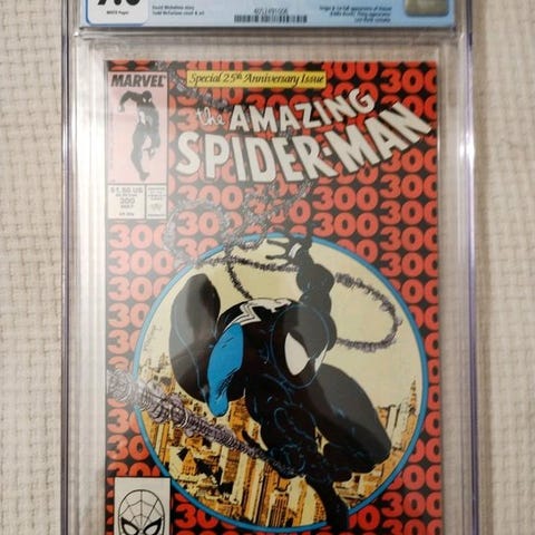 The Amazing Spider-Man første udgave, CGC 9.6 bedømt, nummer 365 med hologramcover og Venom-label, indeholder første optræden af Spider-Man 2099, tegnerne John Romita, Mark Bagley, Aaron Lopresti, Rick Leonardi og Tom DeFalco. Klik på den blå "gå til varen" knap, for at købe eller byde på denne vare. Den samlede pris vil blive vist inden du afgiver dit bud.
