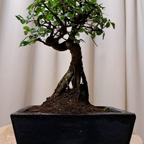 Et cirka 15-årigt altidgrønt kinesisk elm bonsai (Ulmus parviflora) fra Nederlandene, cirka 24 cm høj med en stamme på 2 cm og en pot på 15 cm, vægt omkring 2 kg. Klik på den blå "gå til varen" knap, for at købe eller byde på denne vare. Den samlede pris vil blive vist inden du afgiver dit bud.