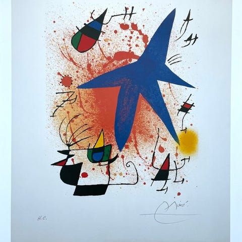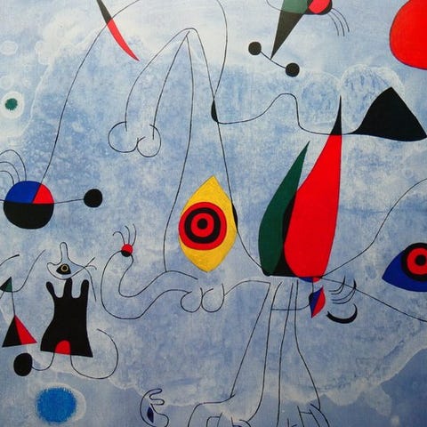 Genfortælling af værket 'Personnages Rythmiques', skabt af Miró i 1934, som er en del af samlingen af Kunstsammlung Nordrhein-Westfalen i Düsseldorf.