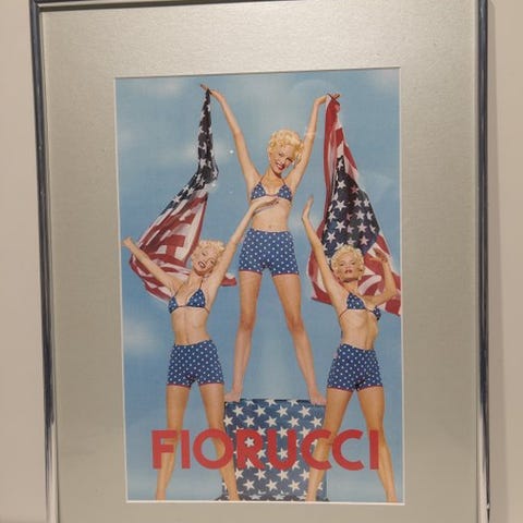 Original Fiorucci - 7 Pinup piger i undertøj, Burlesque | Sjælden plakat | 45 x 35 cm | inkl. ramme