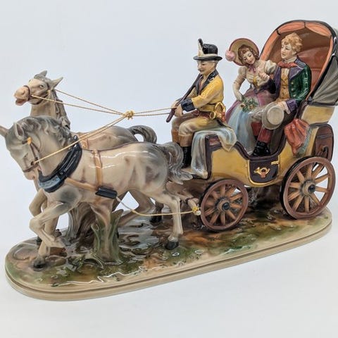 Porcelænsfigur af Scheibe-Alsbach, Tyskland, Napoleon Passage des Alpes, dateret 1950–1960, 22 cm høj, 17 cm bred, 11 cm dyb, Napoleon på hest med rød kappe, i god stand med mindre aldersrelaterede tegn. Klik på den blå "gå til varen" knap, for at købe eller byde på denne vare. Den samlede pris vil blive vist inden du afgiver dit bud.