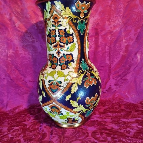 Blomsteragtigt design i perfekt Art Nouveau-stil, både hvad angår de omhyggeligt udførte dekorationer og reliefs på vaserens krop og langs halsen,