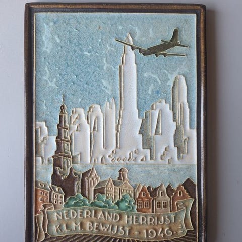Porceleyne Fles terracotta Cloisonné flise tegning af H.J. Tieman, forestilling Walcheren moet droog, fra 1940erne, mål ca. 14 x 20 cm (dybde 1 cm, højde 19,5 cm, bredde 14 cm), i god brugt stand med mindre tegn på alder og pletter. Klik på den blå "gå til varen" knap, for at købe eller byde på denne vare. Den samlede pris vil blive vist inden du afgiver dit bud.