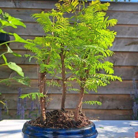 Smuk metasequoia bonsai i gave bonsaiskål. Godt rodfæstet og stærk bonsai, en bonsai, som du vil få meget glæde af. Træet er nemt at vedligeholde og derfor også velegnet til begyndere inden for bonsaihobbyen.