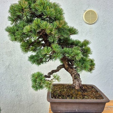 Træet er kraftfuldt og sundt, med flere knopper og livlig vækst. Dets overordnede struktur afspejler års forfinet dyrkning, der kombinerer styrke og elegance, som er karakteristisk for bonsai af høj kvalitet af Japanese White Pine.