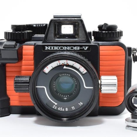 Nikonos-V, ikonisk undervandskamera analog, kendt for pålidelighed og konstruktiv kvalitet. Ideelt til undervandsfotografering, ekstrem udendørs brug eller for Nikon-samlere.