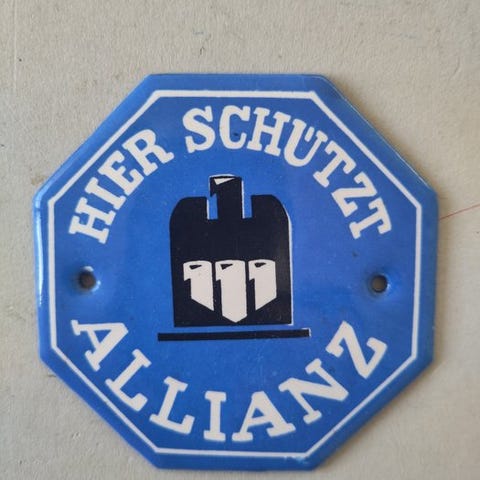De byder på 2 gamle originale emailskilte fra tyske forsikringsselskaber.