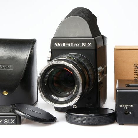 På tilbud er et Rolleiflex SL66 6x6 mellemformatkamerasæt med 2 objektiver og en masse tilbehør.