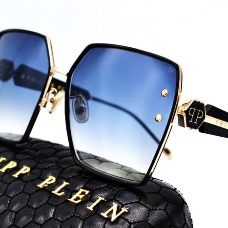 Philipp Plein Plein Badge SPP107-modellen er en dristig erklæring om moderne stil. Disse unisex solbriller skiller sig ud med deres sofistikerede og