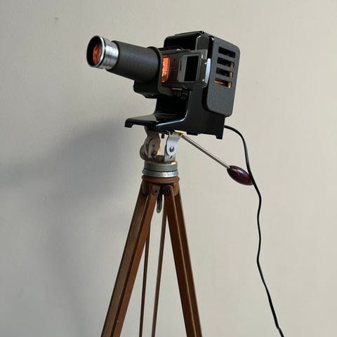 Den vintage projektor giver fantastisk meget lys og passer perfekt ind i en vintage- eller industriel indretning. Gennem den originale ELMARON 150mm-objektiv projiceres diasene skarpt og i livsstørrelse på din væg.