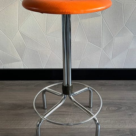 Chromed canvas i orange farve, sæde del, orange base og vendte trætrin.