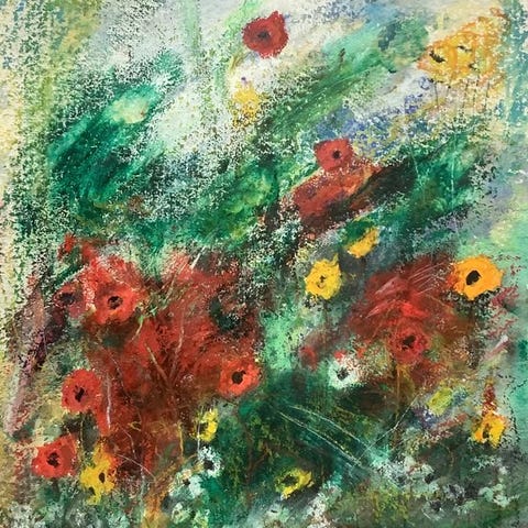Jan Roede (1914-2007) - Abstracte compositie met geel, blauw en rood.