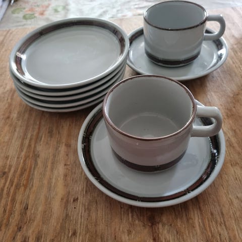 (et sæt mokkekop, u-kop og kagetallerken 25,-)
